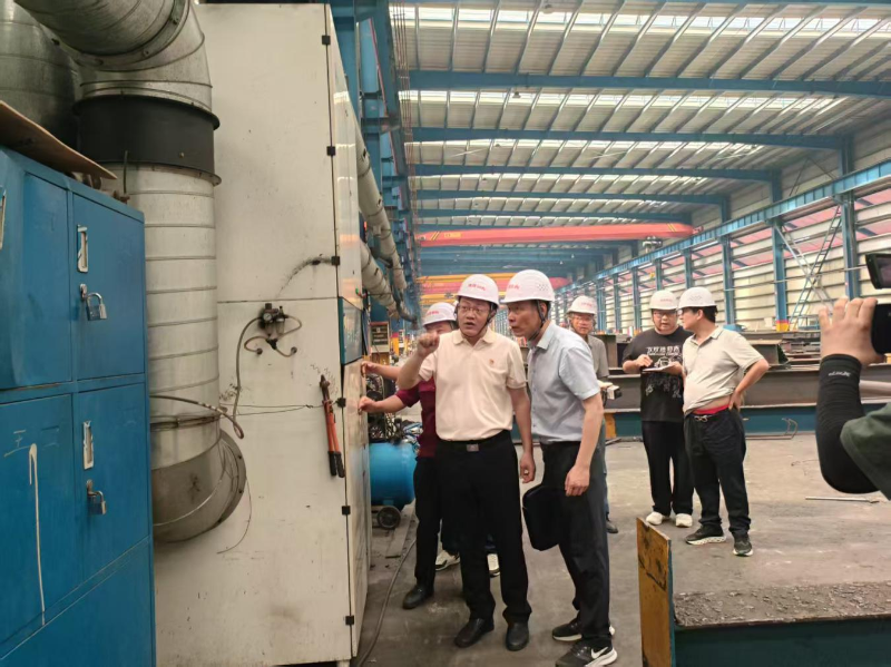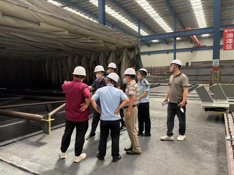 随后,一行人深入公司厂区,其智慧城市停车系统及绿色建筑制造基地项目,2017年环评批复、2019年自主验收,2023年申领排污许可证,废气处理有“干式漆雾过滤 + 活性炭吸附”等手段。在生产车间、废气处理设施旁,环保人员仔细查看抛丸粉尘、喷漆晾干废气处理流程,核对污染物减排实效,指导企业优化环保举措,助力降低非甲烷总烃、苯系物等污染物排放。