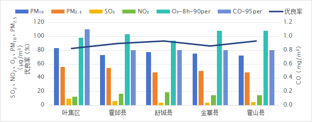2月份,六安市各县区空气质量优良率范围为82.1%(叶集区)~92.9%(舒城县、霍山县),平均优良率为88.6%。