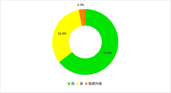 7月份,六安市城区空气质量优良率为96.8%,其中空气质量为优的天数20天,占64.5%;为良的天数10天,占32.3%;轻度污染1天,占3.2%;无中度污染及以上天气。与上月相比,空气质量优良天数比例上升3.5个百分点;与上年同期相比,空气质量优良天数比例下降3.2个百分点。
