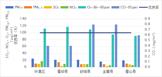 8月份,六安市各县区空气质量优良率均为100%。