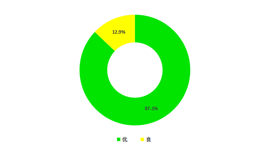 8月份,六安市城区空气质量优良率为100%,其中空气质量为优的天数27天,占87.1%;为良的天数4天,占12.9%;无轻度污染及以上天气。与上月相比,空气质量优良天数比例上升3.2个百分点;与上年同期相比,空气质量优良天数比例上升3.2个百分点。
