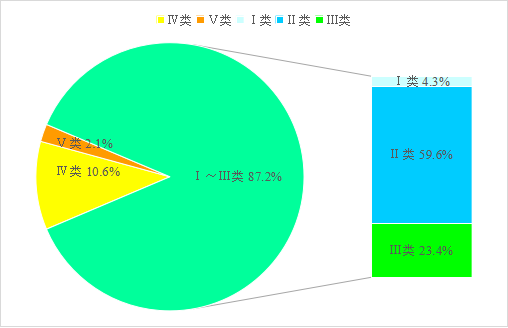 图3 8月六安市地表水水质类别比例