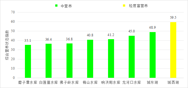 监测营养状态的8个湖库中,中营养状态的7个,占87.5%,轻度富营养状态的1个,占12.5%。