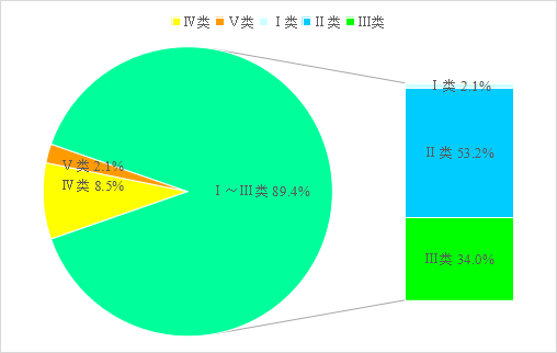 9月,全市地表水总体水质状况为良,监测的47个断面中,Ⅰ~Ⅲ类水质断面比例为89.4%(42个),Ⅳ~Ⅴ类10.6%(5个)。