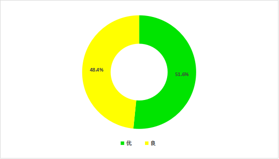 10月份,六安市城区空气质量优良率为100%,其中空气质量为优的天数16天,占51.6%;为良的天数15天,占48.4%;无轻度污染及以上天气。与上月相比,空气质量优良天数比例持平;与上年同期相比,空气质量优良天数比例上升6.5个百分点。