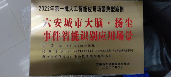 “六安城市大脑·扬尘事件智能识别应用”荣获安徽省“2022年第一批人工智能应用场景典型案例”
