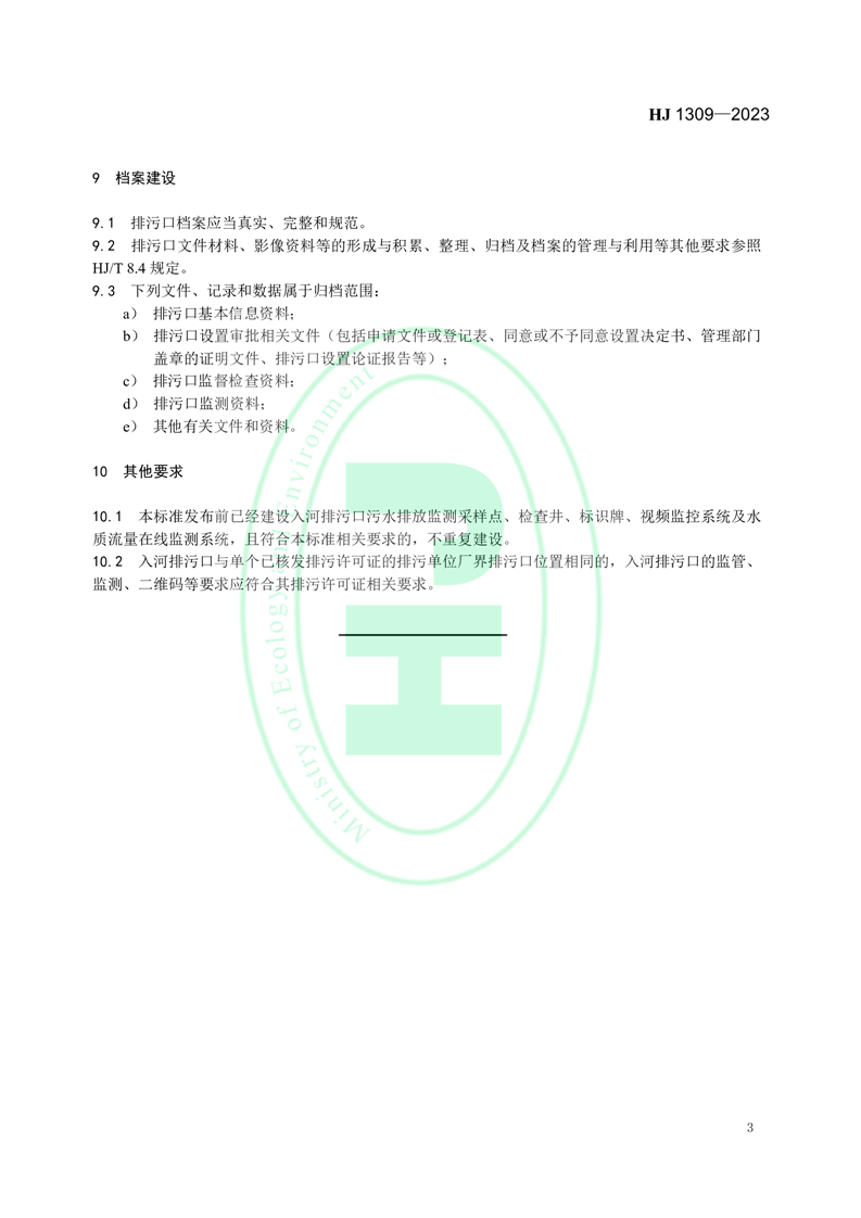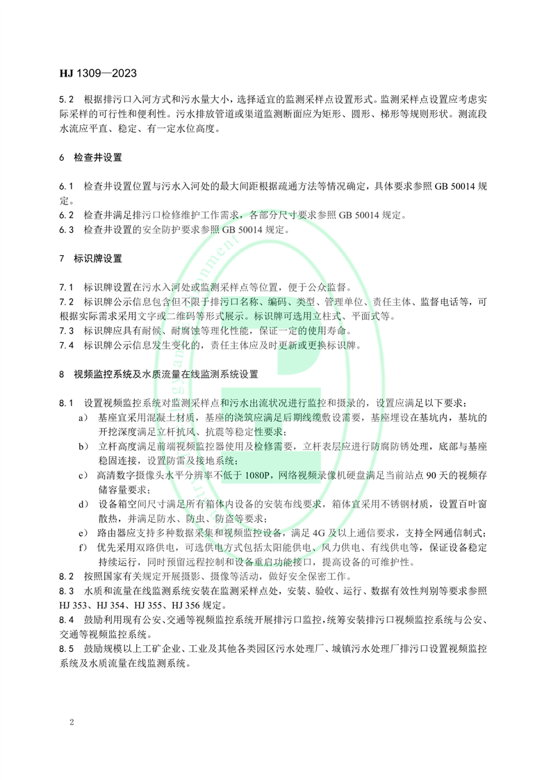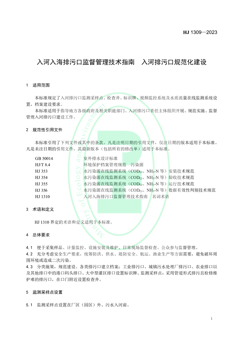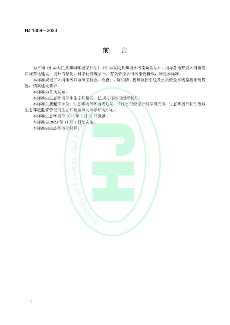 为贯彻《中华人民共和国环境保护法》《中华人民共和国水污染防治法》,指导各地开展入河排污口规范化建设,提升信息化、科学化管理水平,有效管控入河污染物排放,制定本标准。本标准规定了入河排污口监测采样点、检查井、标识牌、视频监控系统及水质流量在线监测系统设置,档案建设要求。本标准为首次发布。