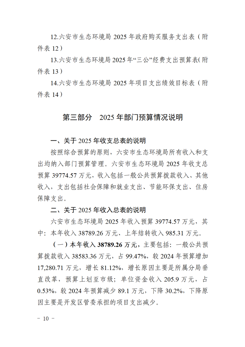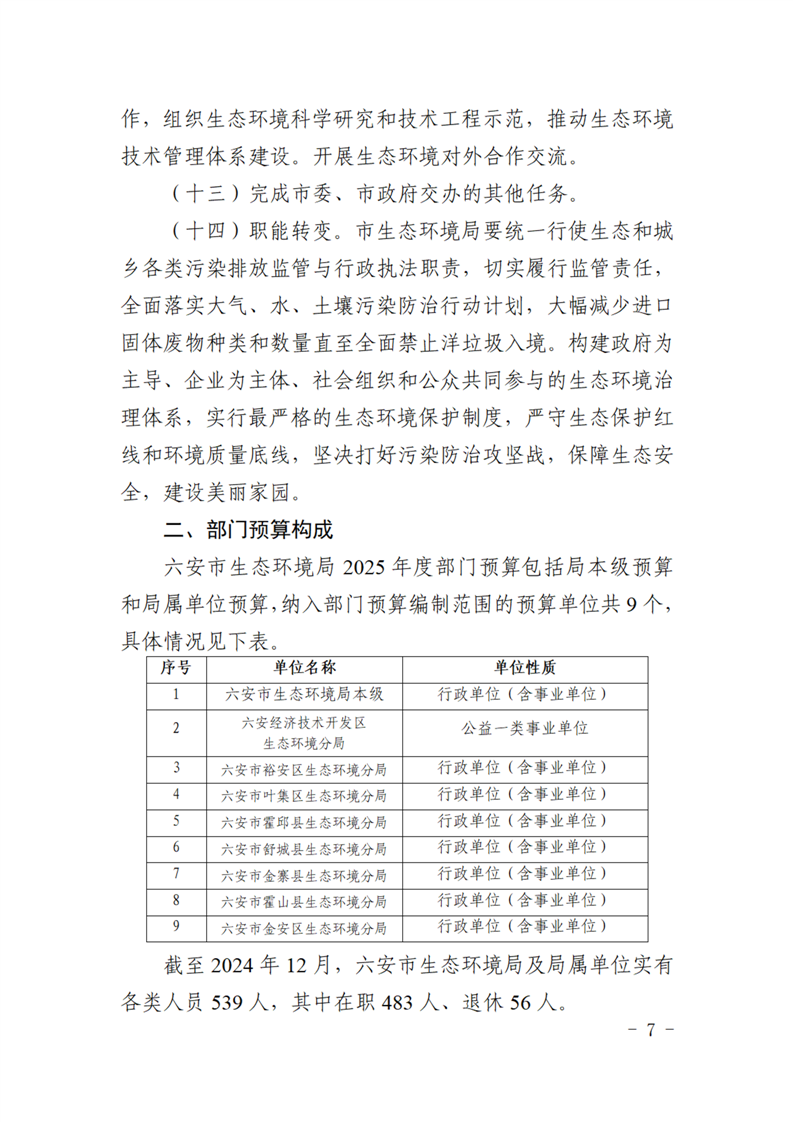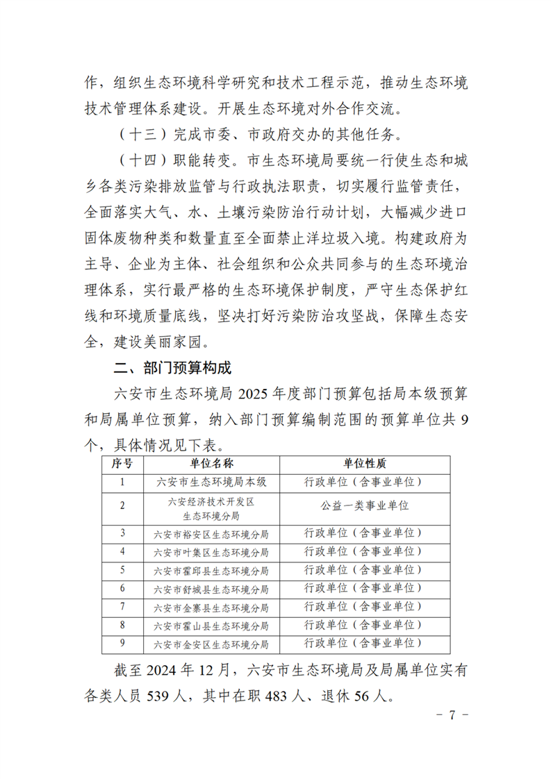 六安市生态环境局2025年部门预算公开