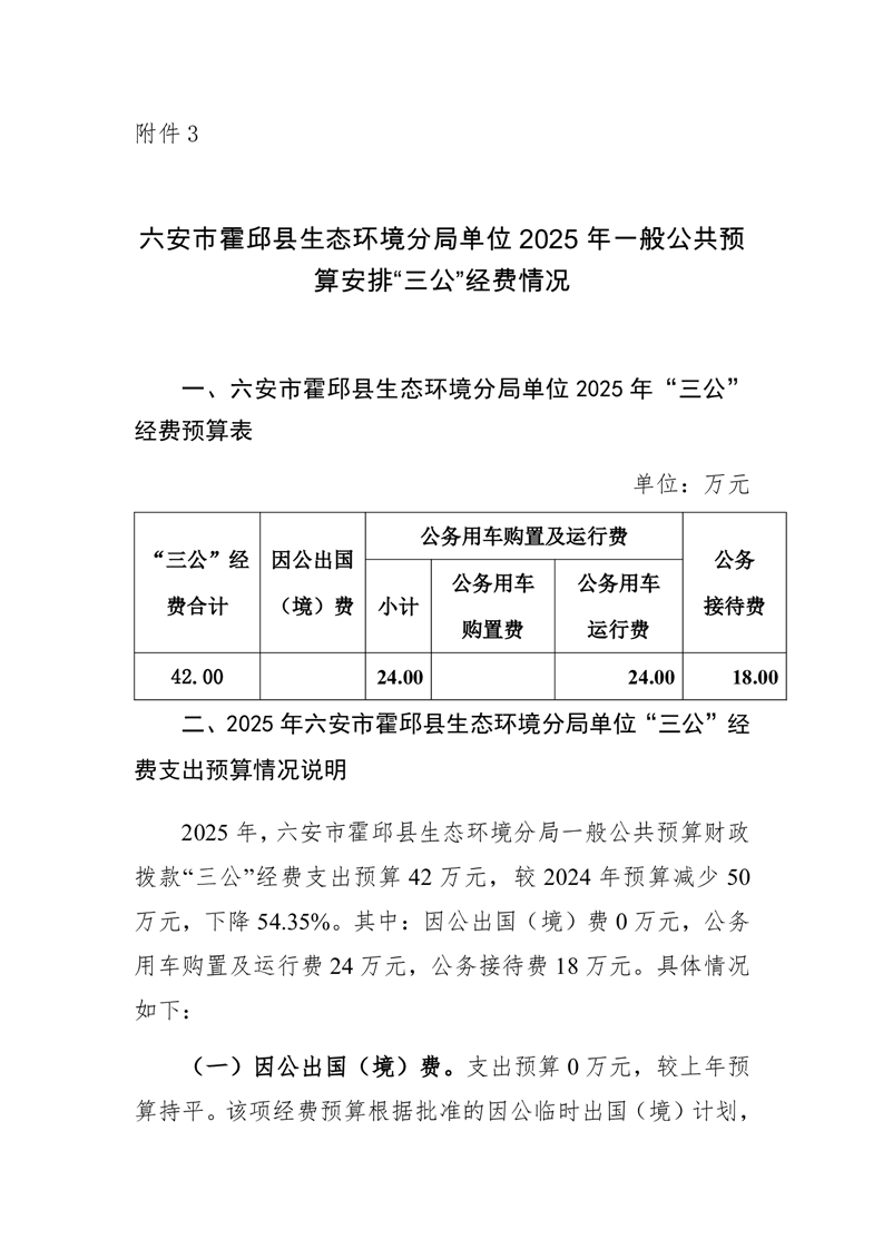 六安市霍邱县生态环境分局单位2025年一般公共预算安排“三公”经费情况公开