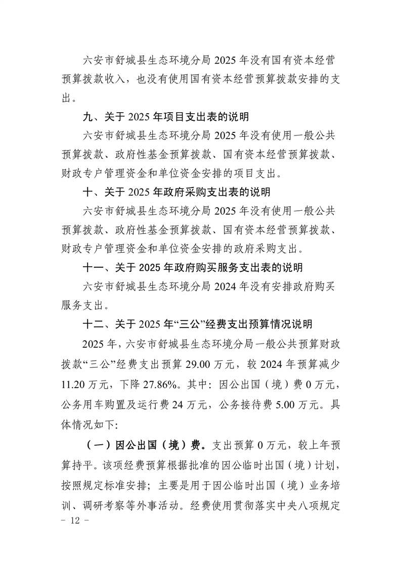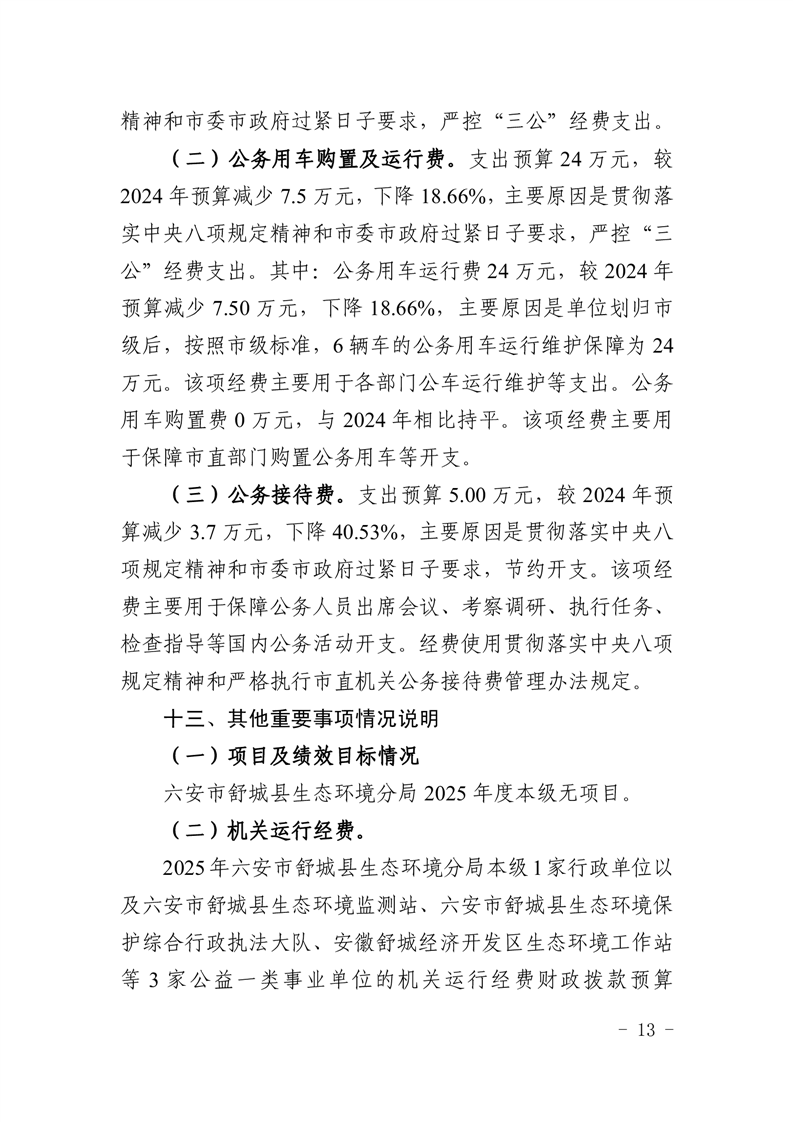 表十三、六安市舒城县生态环境分局2025年“三公”经费支出预算表.pdf文件下载