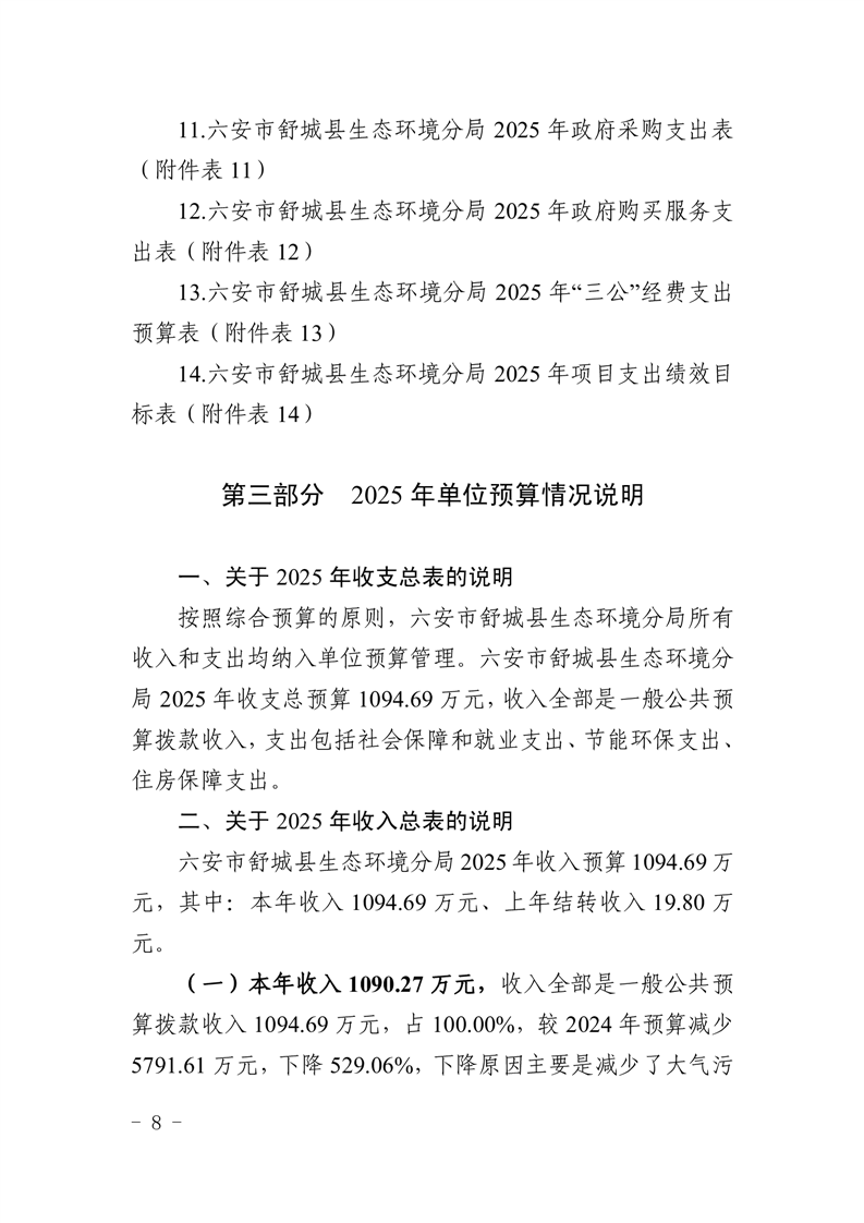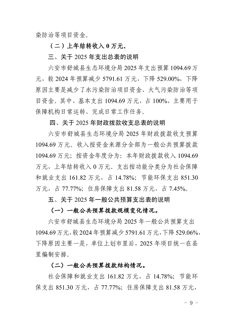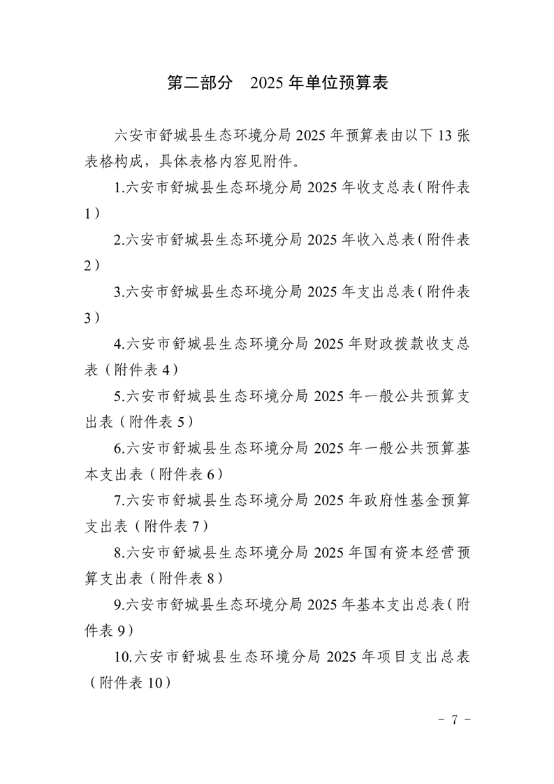 表一、六安市舒城县生态环境分局2025年收支总表.pdf