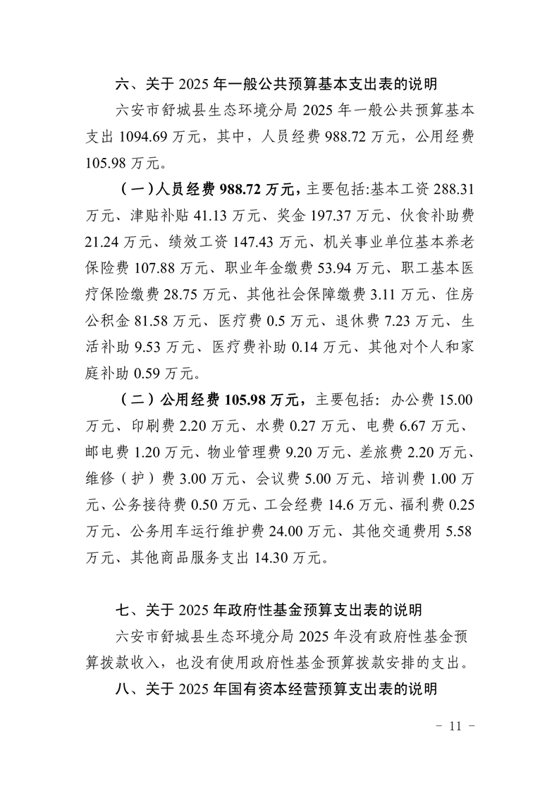 表九、六安市舒城县生态环境分局2025年基本支出总表.pdf