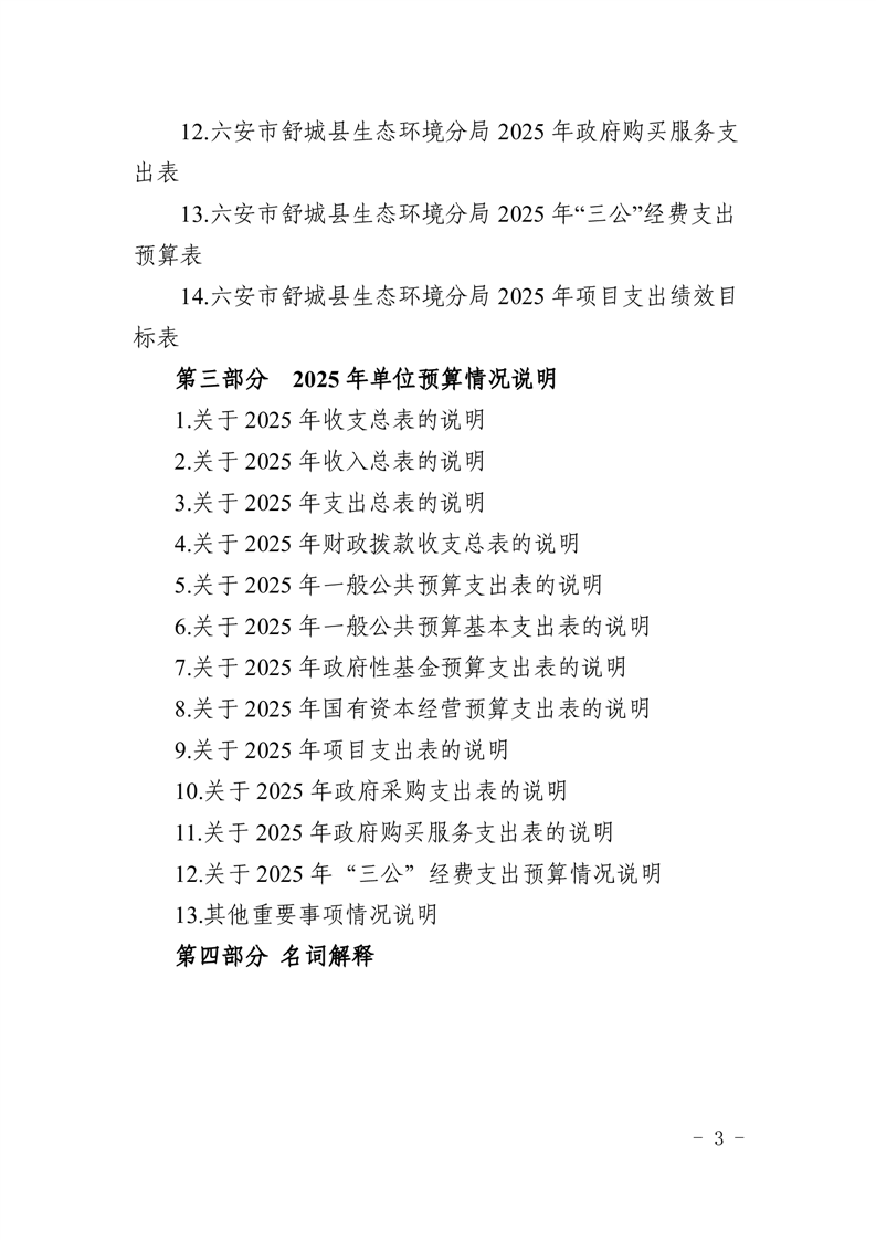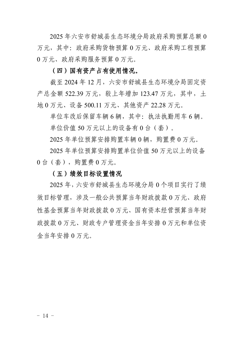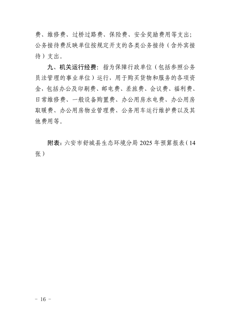 六安市舒城县生态环境分局2025年单位预算公开