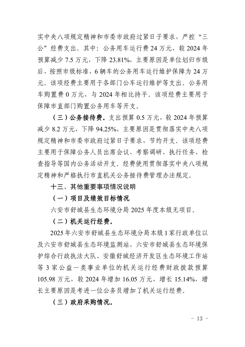 13.六安市舒城县生态环境分局2025年“三公”经费支出预算表.pdf