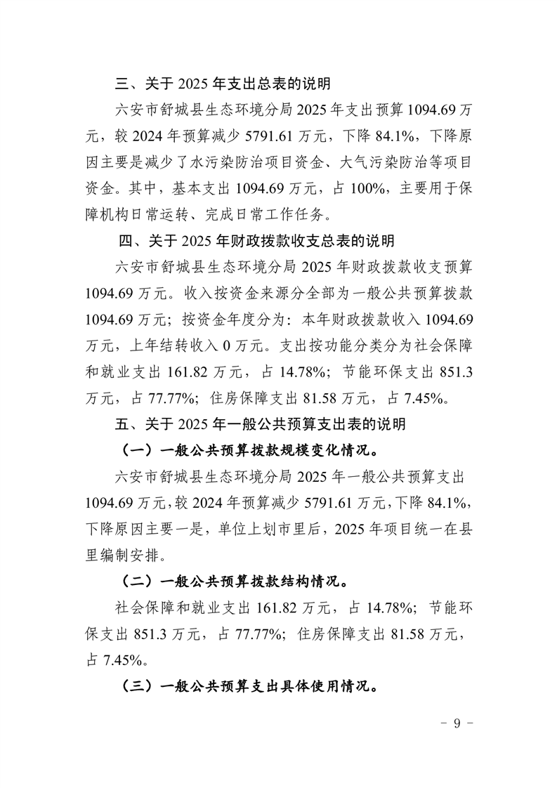 9.六安市舒城县生态环境分局2025年基本支出总表.pdf