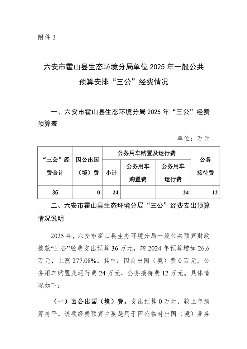 六安市霍山县生态环境分局单位2025年一般公共预算安排“三公”经费情况公开