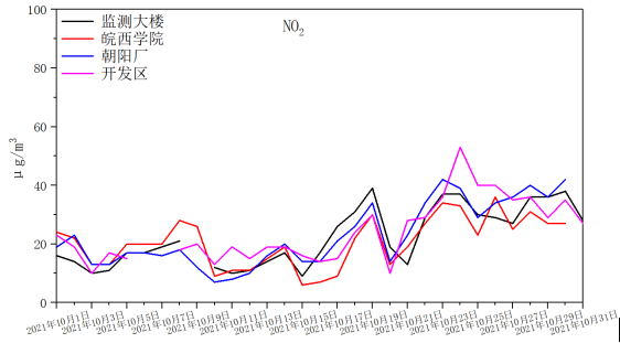 监测大楼站点SO2浓度在本月相对其他几个站点较为突出,出现短时峰值现象,建议对站点周边散煤燃烧、高排放机动车等污染源加强管控;对于CO,开发区站点数值较高,建议加强站点周边机动车尾气排放、重型柴油货车管控;开发区站点NO2浓度明显高于其他站点且出现峰值现象,建议加强站点周边柴油机械管控,做好大型车辆绕行工作;朝阳厂站点O3浓度较为突出,建议降低站点周边氮氧化物、挥发性有机物等排放量。