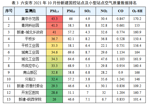 六安市2021年10月份空气质量分析