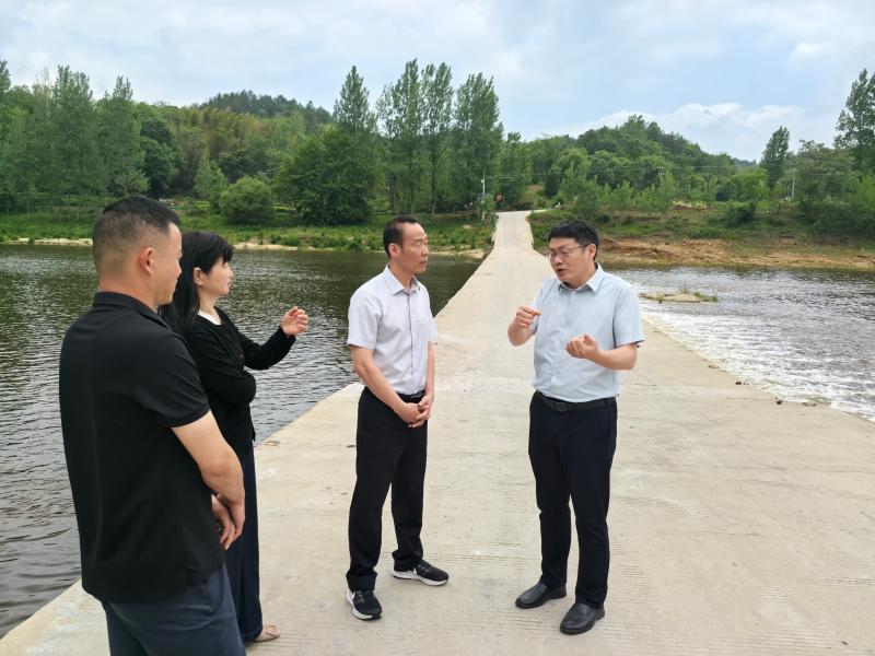 5月9日上午,市生态环境局党组书记沈三保调研金寨丁埠大桥地表水国控断面水质稳定达标工作。