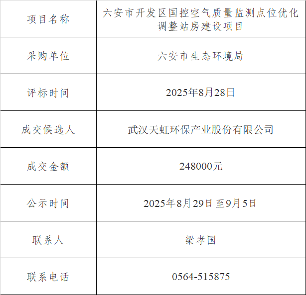 六安市开发区国控空气质量监测点位优化调整站房建设项目招标结果公示