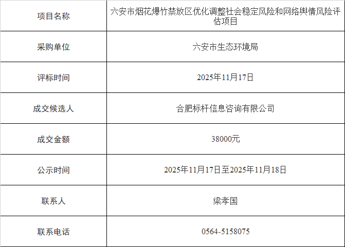 六安市烟花爆竹禁放区优化调整社会稳定风险和网络舆情风险评估项目成交结果公告