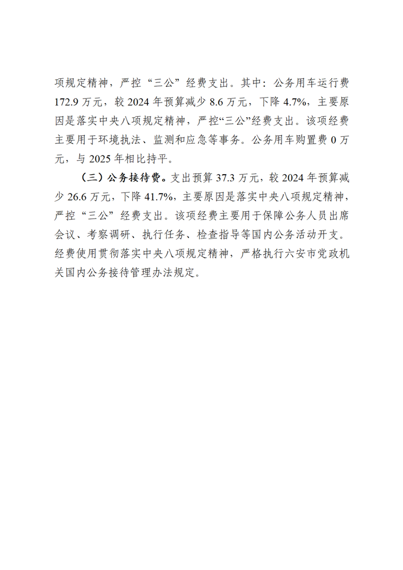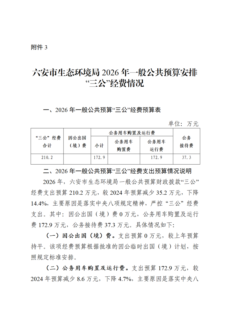 六安市生态环境局2026年一般公共预算安排“三公”经费情况