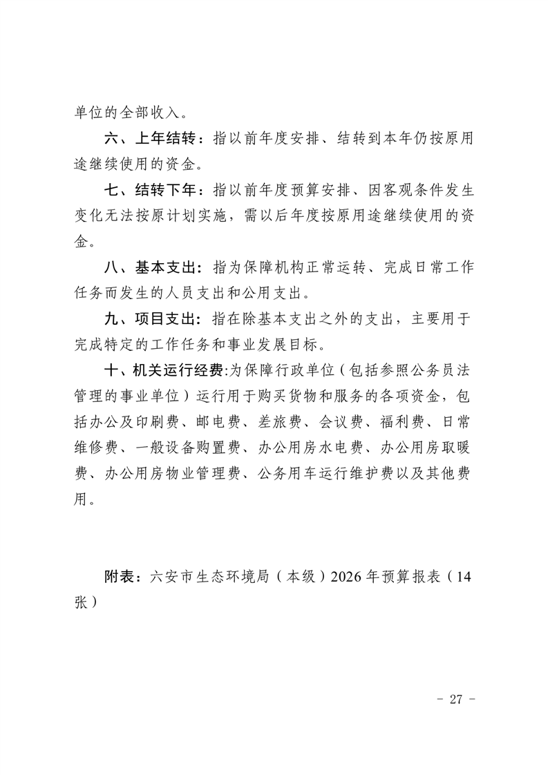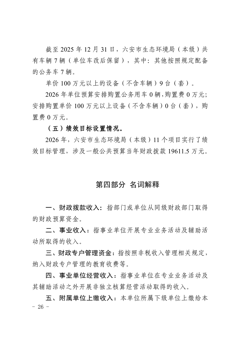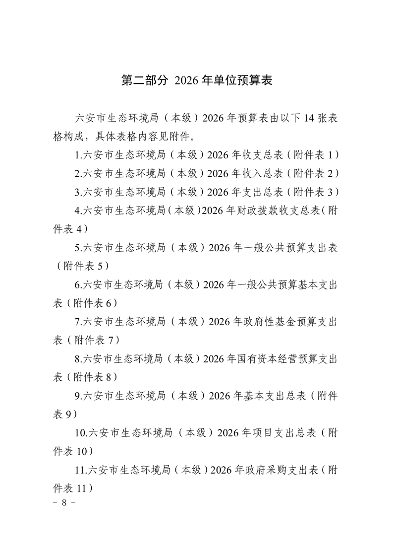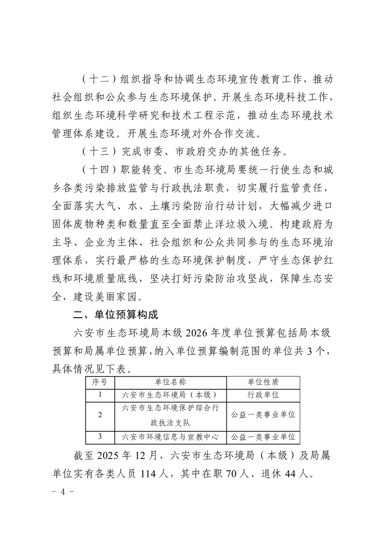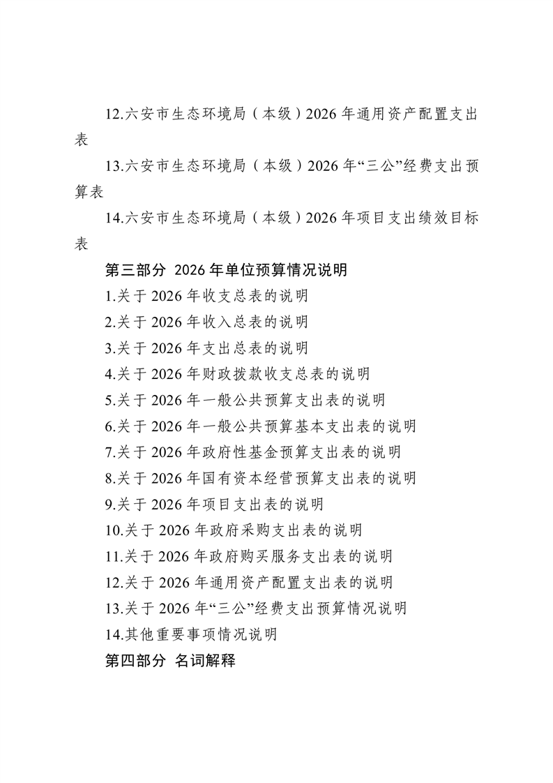 六安市生态环境局本级2026年单位预算