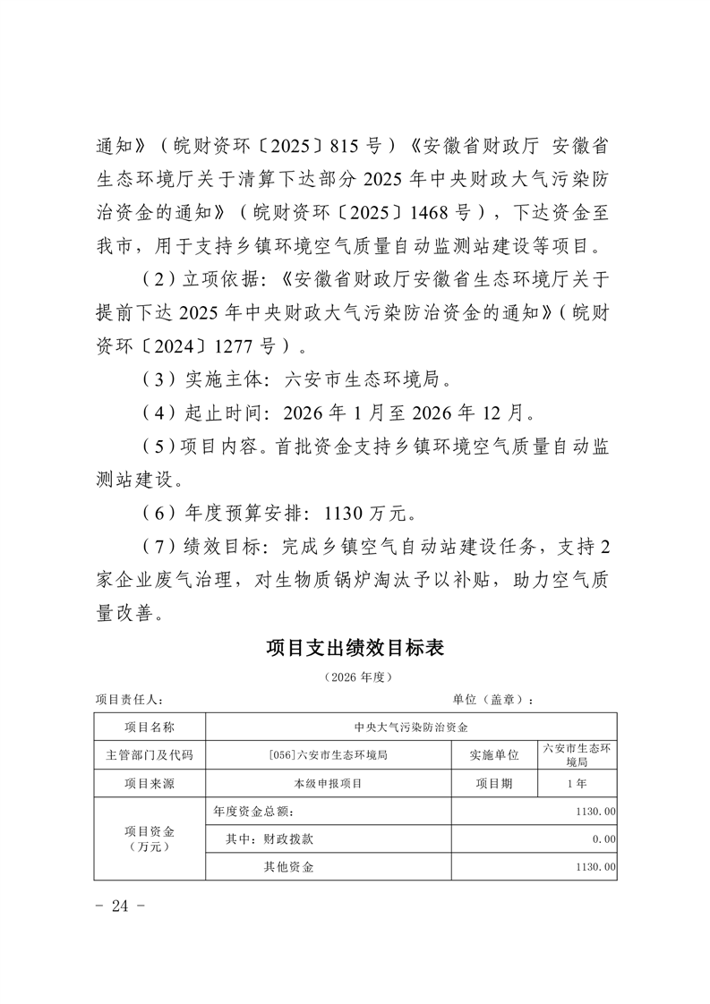 14.六安市生态环境局本级2026年项目支出绩效目标表-2024年省级大气资金.pdf