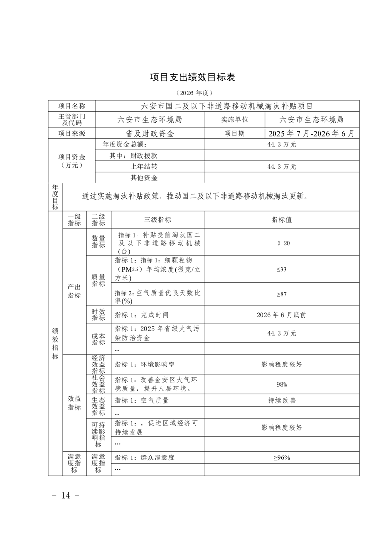 14. 六安市金安区生态环境分局2026年项目支出绩效目标表.pdf标签: